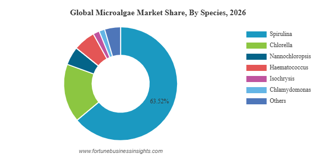 • Spirulina holds the largest market share due to extensive use in dietary supplements and functional foods.